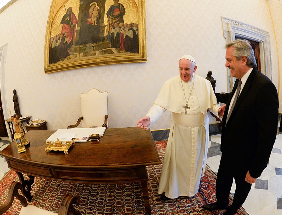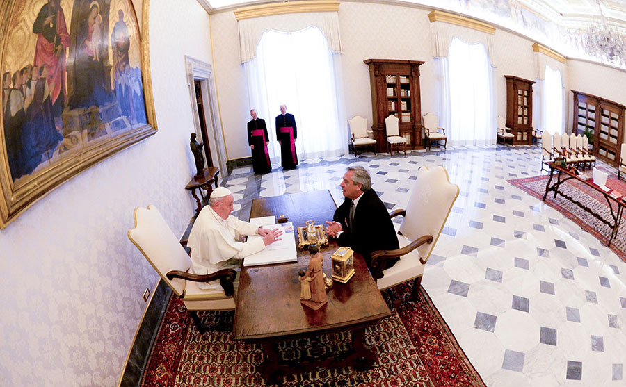 El presidente Alberto Fernández fue recibido hoy en el Vaticano por el papa Francisco, con quien mantuvo un encuentro a solas en la Biblioteca Privada del Pontífice, donde hablaron sobre la situación económica y social de la Argentina. La reunión forma parte de una gira que también incluye visitas a Italia, España, Francia y Alemania.