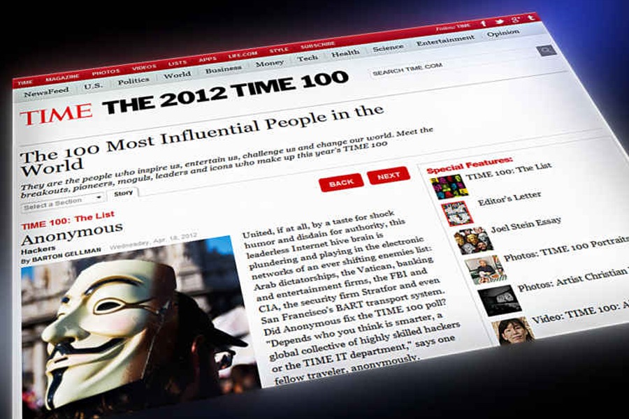 En 2012, Anonymous fue nombrado como una de las “100 personas más influyentes” por la revista Time.