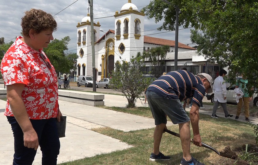 Durante una recorrida matutina, Marina dijo: “Malvinas Argentinas cada día está más bonita, está mejor. Con mi esposo nos hemos entusiasmado con venir a traer plantas a la Plaza Mailín. Todo comenzó con un palo borracho que tenía en casa hace años y siempre buscaba dónde llevarlo. Luego, seguimos trayendo otros árboles y plantas, para que el vecino pueda disfrutar de esa vegetación, y así lo eguiremos haciendo”.
