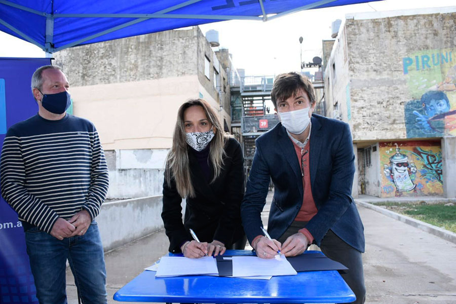 El intendente Lucas y la titular Agua y Saneamientos Argentinos Malena Galmarini participaron de un operativo preventivo de COVID-19 en El Palomar, y firmaron un acuerdo para avanzar con la red de agua y cloacas en distintas zonas del distrito.