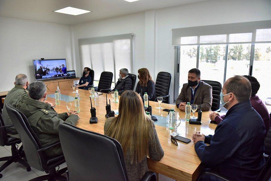 Ciudad de Ing. Pablo Nogués, 19 de agosto de 2021 – El intendente de Malvinas Argentinas, Leo Nardini, estuvo en el Centro Operativo Municipal (COM) ubicado sobre la Av. Del Sesquicentenario (ex Ruta 197) y Yatasto, en la ciudad de Ing. Pablo Nogués. Allí recibió al secretario de Seguridad y Política Criminal del Ministerio de Seguridad de la Nación, Eduardo Villalba.