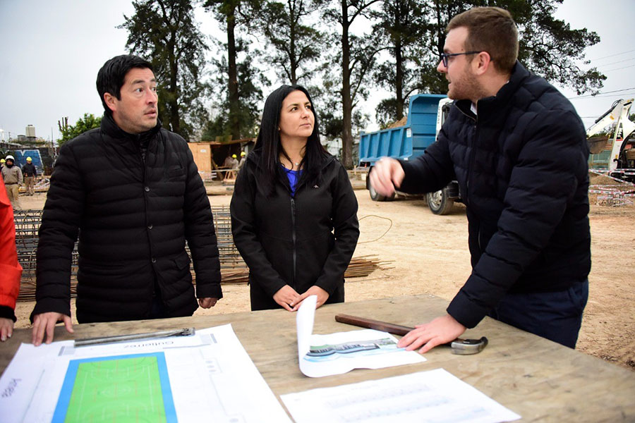 Noe Correa y Leo Nardini visitaron la obra del futuro polideportivo de Ing. Adolfo Sourdeaux