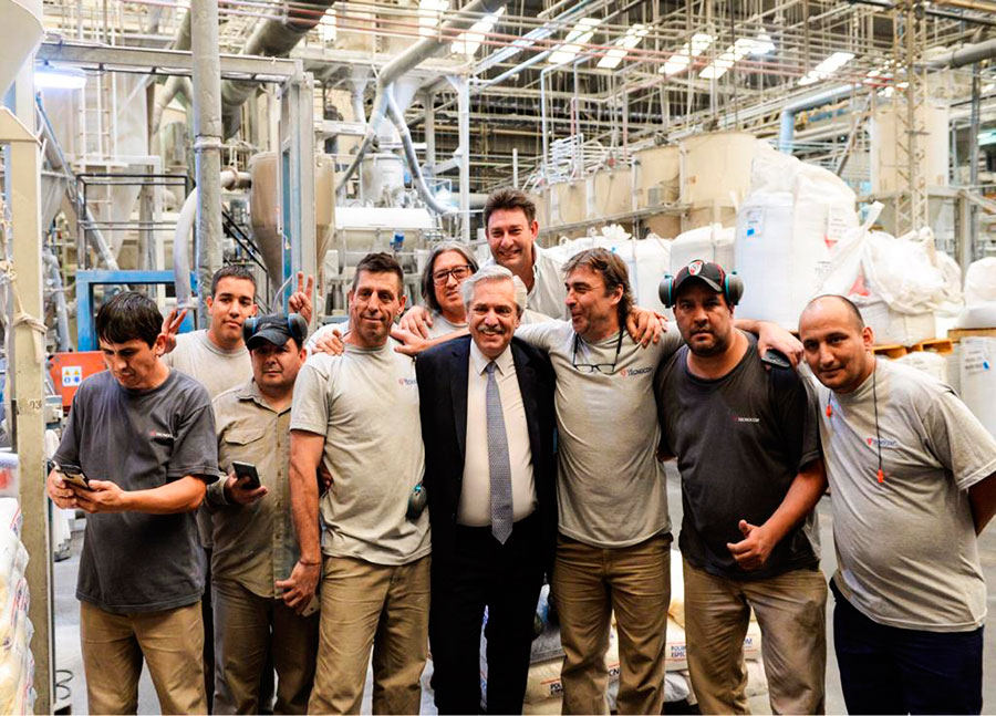 El mandatario fue recibido por directivos y trabajadores de la empresa en la sede de la firma que se encuentra en la localidad de Pablo Podestá. También participó de la recepción el intendente local Diego Valenzuela. El Presidente se mostró interesado en los detalles de cada paso de la cadena de producción y dijo: “Es una gran responsabilidad reactivar la industria nacional, todos tenemos que entender la importancia de fortalecer la economía real, de los que generan trabajo, de los que producen, y de los que exportan”.La PyME, que fue creada en 1975, llegó a tener 500 empleados y hoy cuenta con una nómina de 190 trabajadores. En sus plantas de producción en las provincias de Buenos Aires y de San Luis tiene la capacidad de procesar 4000 toneladas mensuales de compuesto de PVC y 600 de mangueras, caños y productos eléctricos. Recorrieron las instalaciones junto al mandatario el ministro de Desarrollo Productivo, Matías Kulfas; el secretario general de la Presidencia, Julio Vitobello, y el secretario de Comunicación y Prensa, Juan Pablo Biondi.