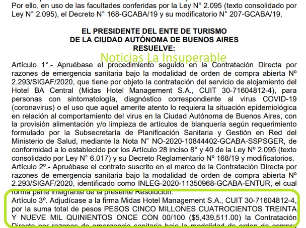 A través de la RESOLUCIÓN N.° 67/ENTUR/20 publicada hoy en el Boletín Oficial de CABA, se puso de manifiesto que el presidente del Ente de Turismo de la Ciudad Autónoma de Buenos Aires, Gonzalo Robredo (primo hermano del ex Jefe de Gabinete Marcos Peña), contrató al Hotel BA Central para alojar allí a personas con sintomatología y/o diagnóstico correspondiente al virus COVID-19.