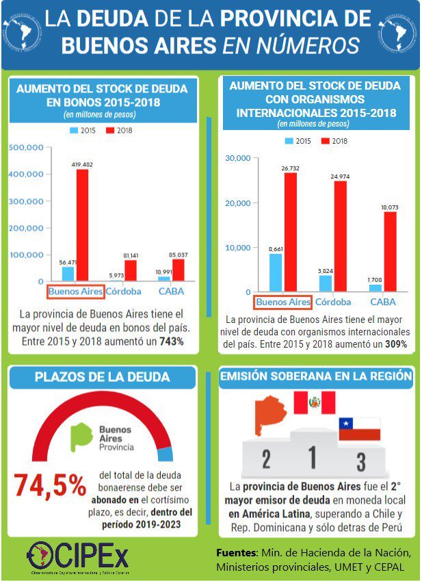 La deuda de la Pcia de BuenosAires en números: Mayor nivel de deuda en bonos del país Mayor nivel de deuda con organismos internacionales 2° emisor de deuda soberana en A. Latina en 2018 74,5% del total de la deuda debe ser abonado entre 2019 y 2023